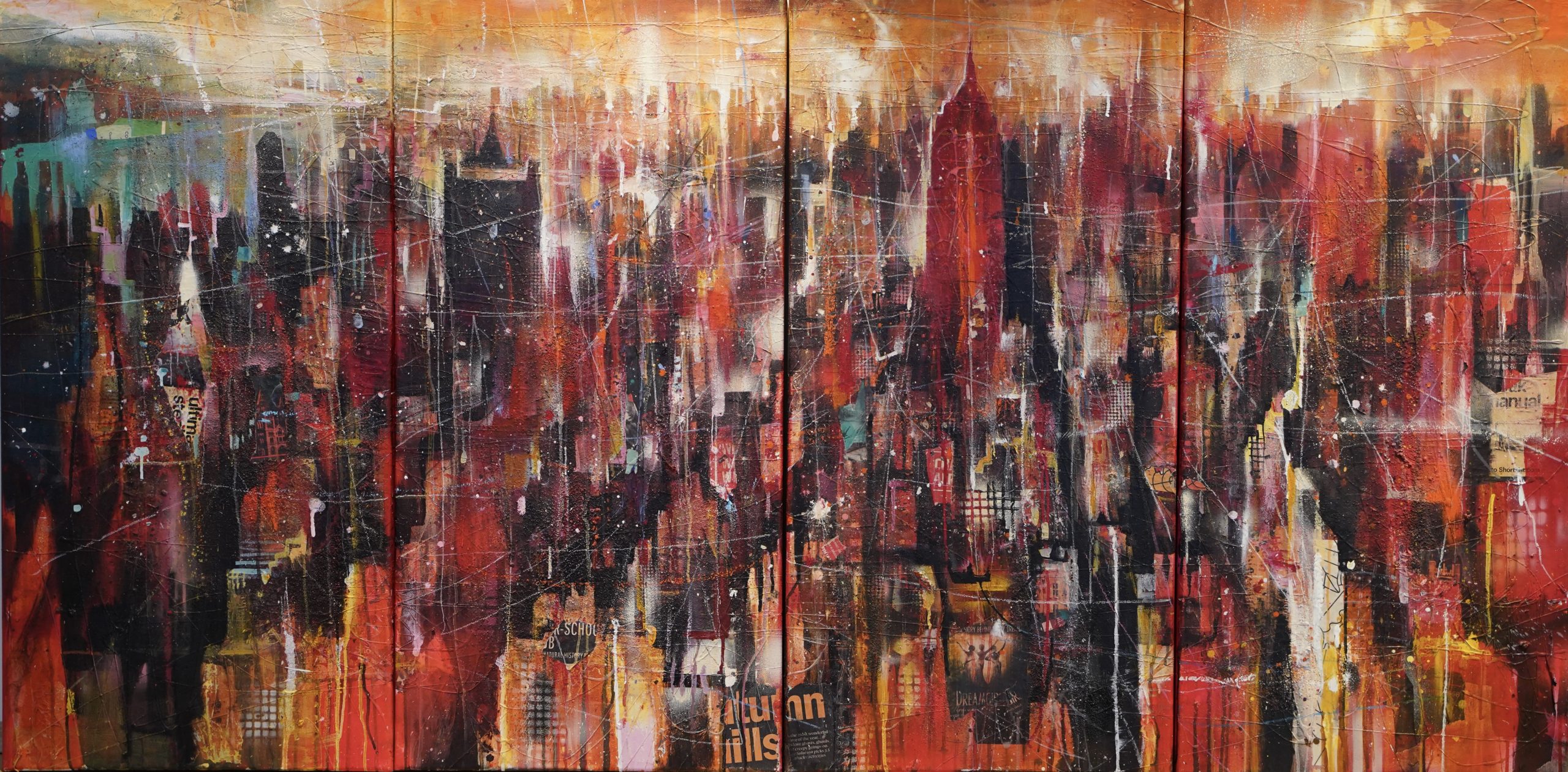 Bernhard Vogel, N.Y. Midtown (Autumn kills), Mixed Media auf Leinwand, 200 x 100 cm, 2018