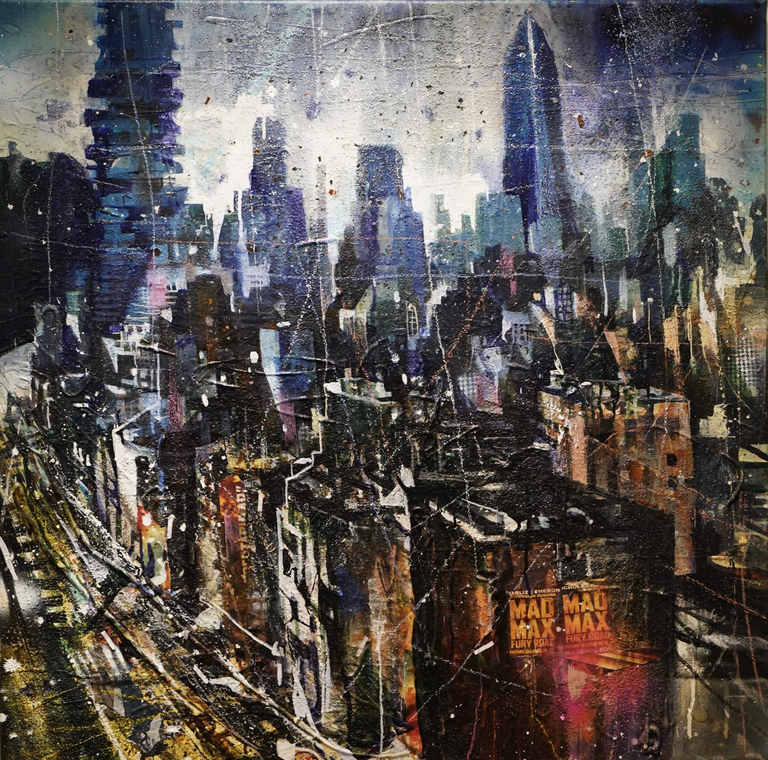 Bernhard Vogel, N.Y. Soho (Mad Max), Mixed Media auf Leinwand, 80 x 80 cm, 2020
