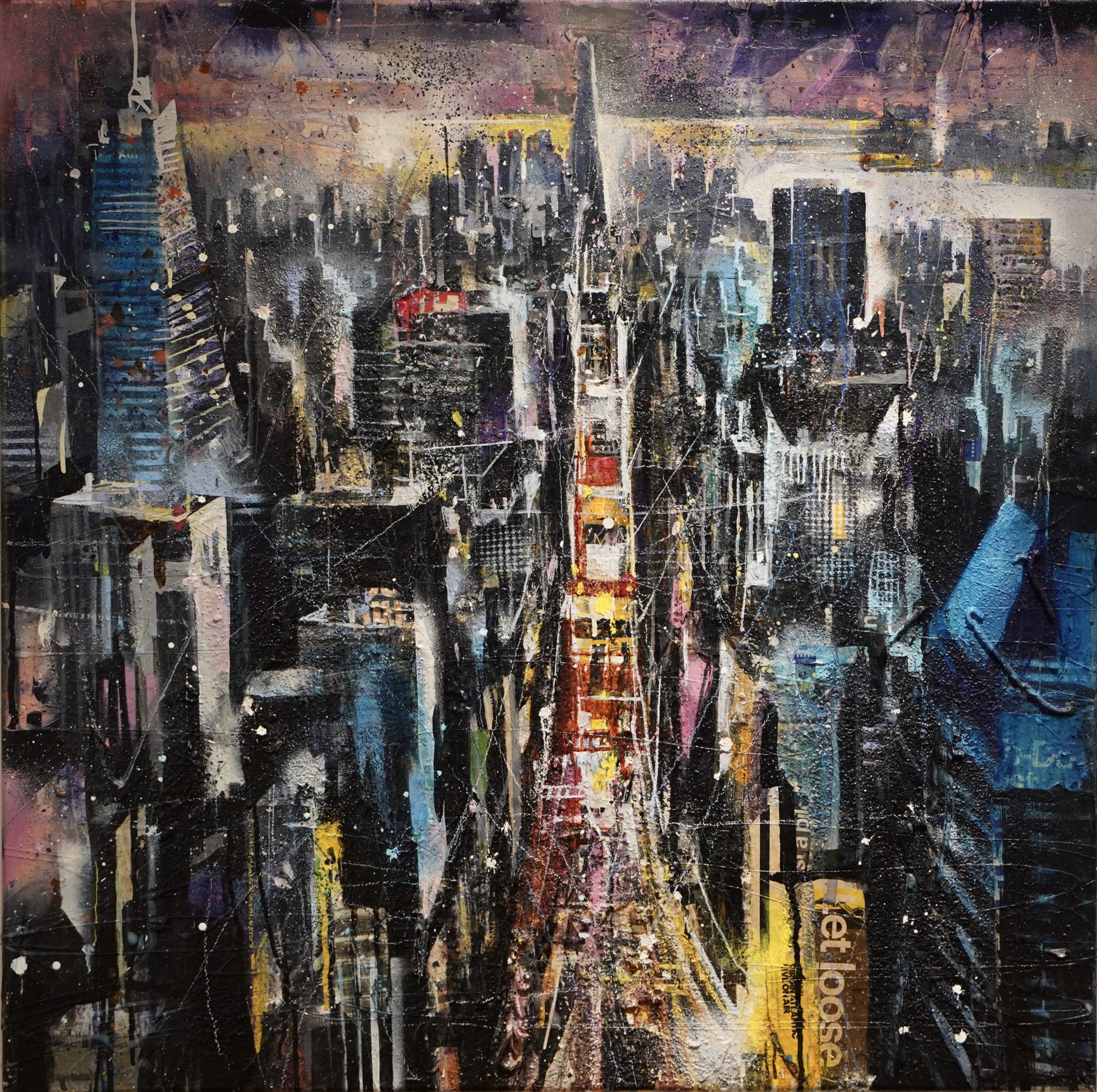 Bernhard Vogel, N.Y. Times Square (Let loose), Mixed Media auf Leinwand, 80 x 80 cm, 2019